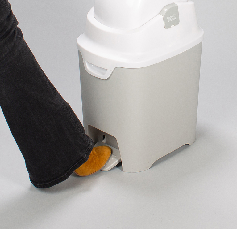 Este modelo es aún más cómodo que el modelo estándar. No necesitas tus manos para botar el pañal, por lo que es extra higiénico. Nuestro basurero para pañales es ideal para cualquier habitación ya que bloquea la salida olores con sus sistema de cierre inteligente.